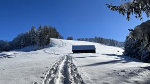 Schön durch den Schnee zu laufen, zuerst im Nebel, dann mit viel Sonne, traumhaft |