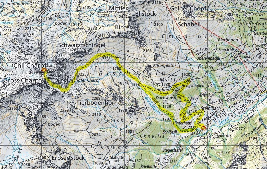 Elm-Steinibach (1111m) - Chärpfscharte (2644m) - Chli Chärpf (2699m) - Chärpfscharte (2644m) - Elm-Steinibach(1111m)
