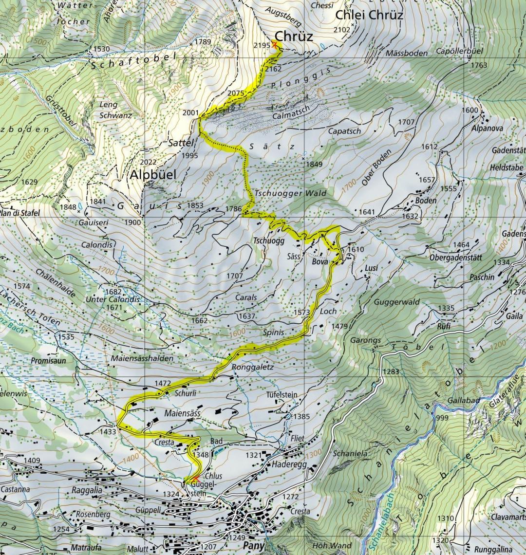 Pany Parkplatz Güggelstein (1340m) - Bova (1610m) - Chrüz (2195m) - Bova (1610m) - Pany Parkplatz Güggelstein (1340m)