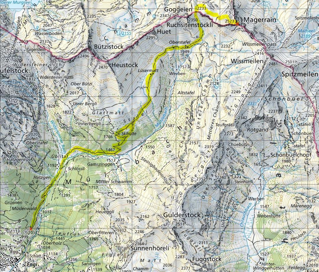 Engi (1033m) - Oberstafel (1949m) - Pt.2233 - Magerrain (2523m) - Pt.2233 - Oberstafel (1949m) - Engi (1033m)