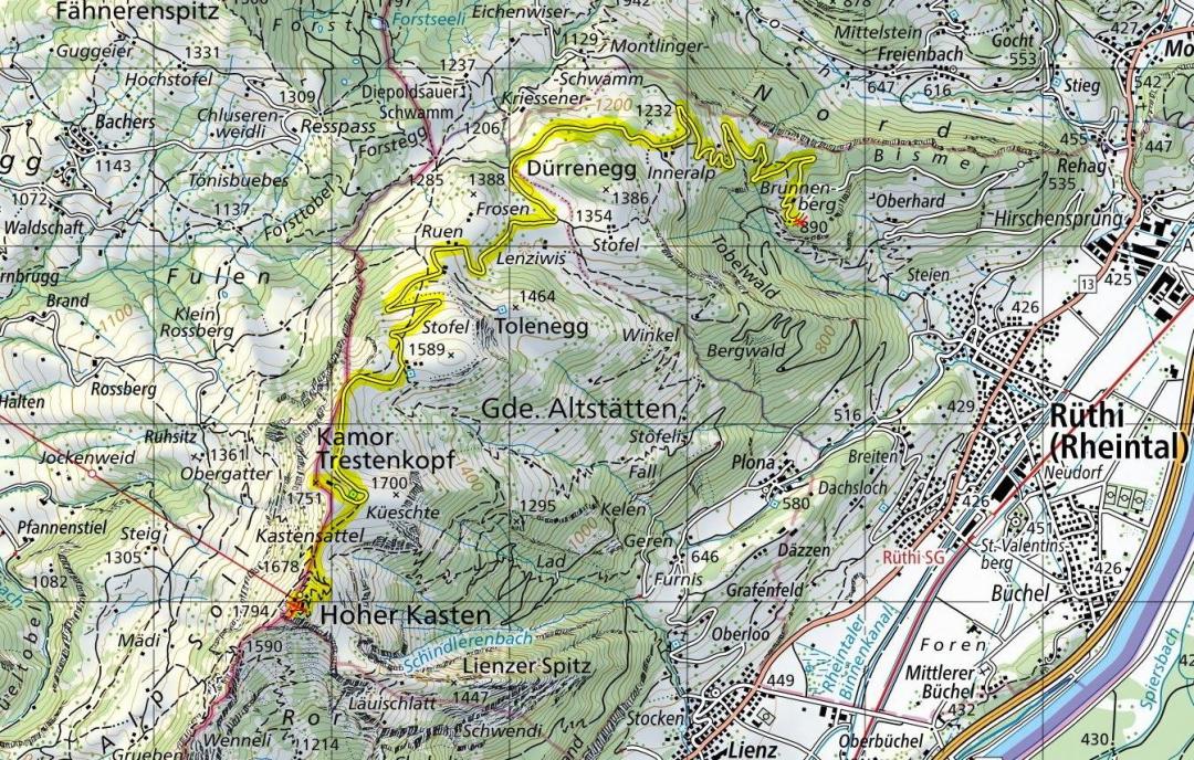 Rüthi-Brunnenberg (890m) - Hoher Kasten (1794m) - Kamor Trestenkopf (1751m) - Rüthi-Brunnenberg (890m)