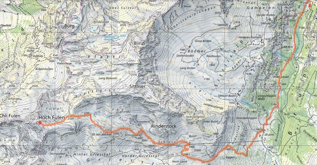 Von 2 Routen wählte ich für den Aufstieg die "rechte" Route über Trittli und Fulälpli. Für den Abstieg könnte ich dann die "linke" Route im Griesstal nehmen. Habe ich gedacht. Die "rechte" Route empfand ich aber so schön, dass ich die gleiche Route auch wieder im Abstieg wählte und es hat sich gelohnt.