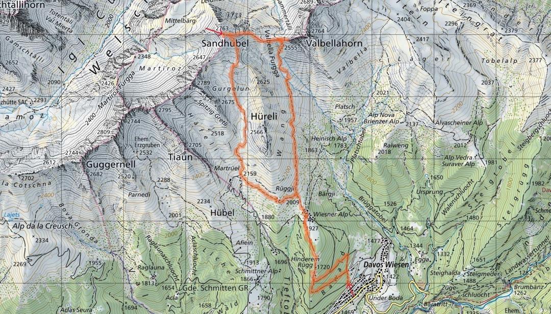 Auf der Valbella Furgga, Blick auf Jammertälligrat