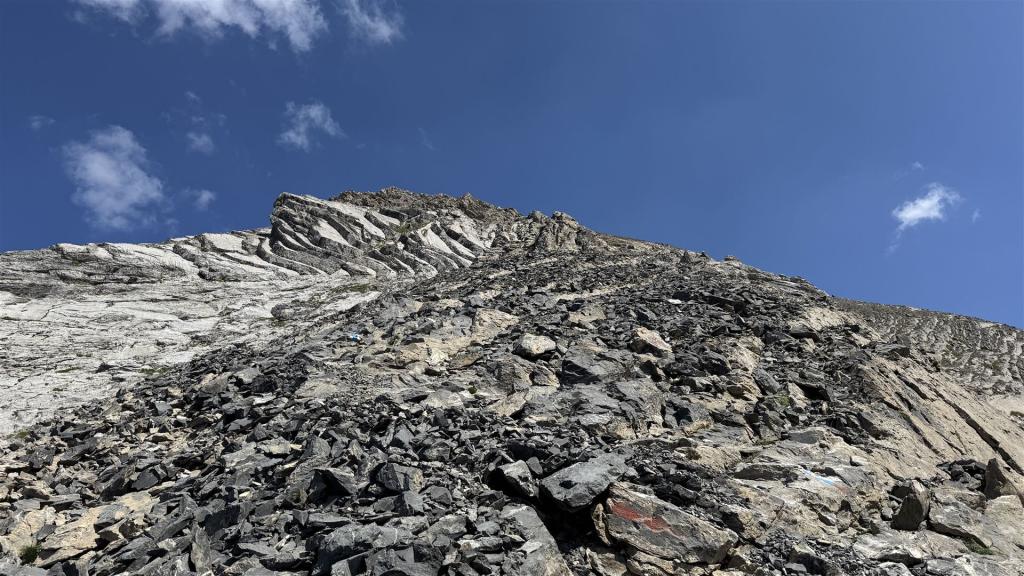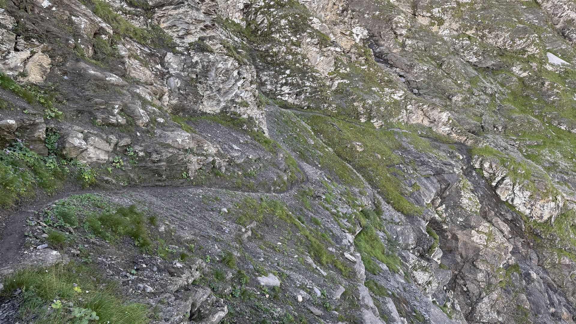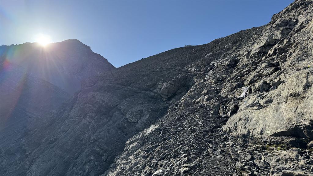Die Route führt auf die linke Seite des felsigen Abhangs -