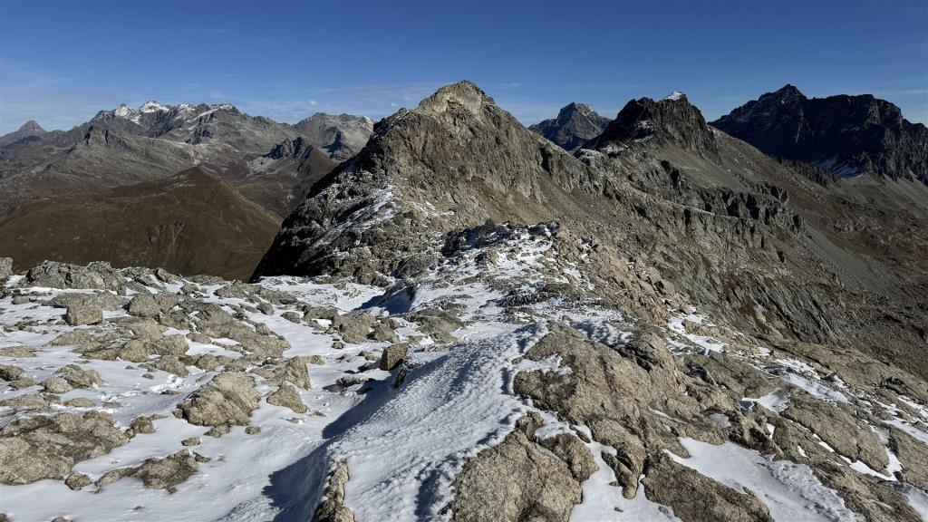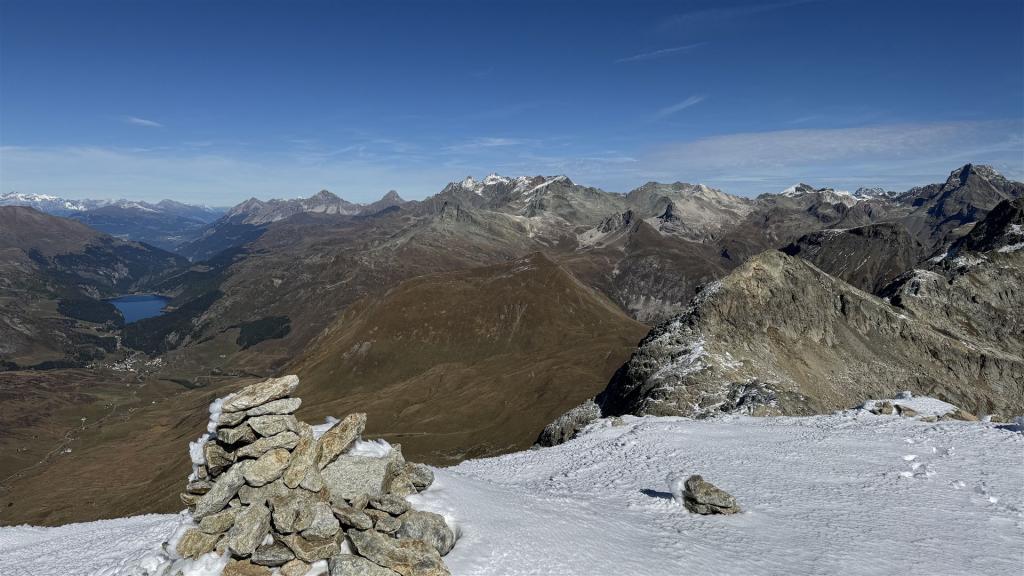 Auf dem Piz Grevasalvas, Blick auf Piz da la Margna, Piz Bacun -