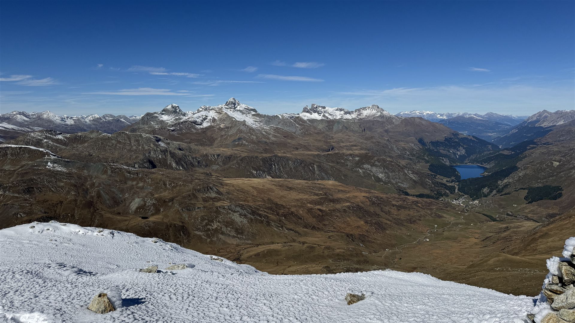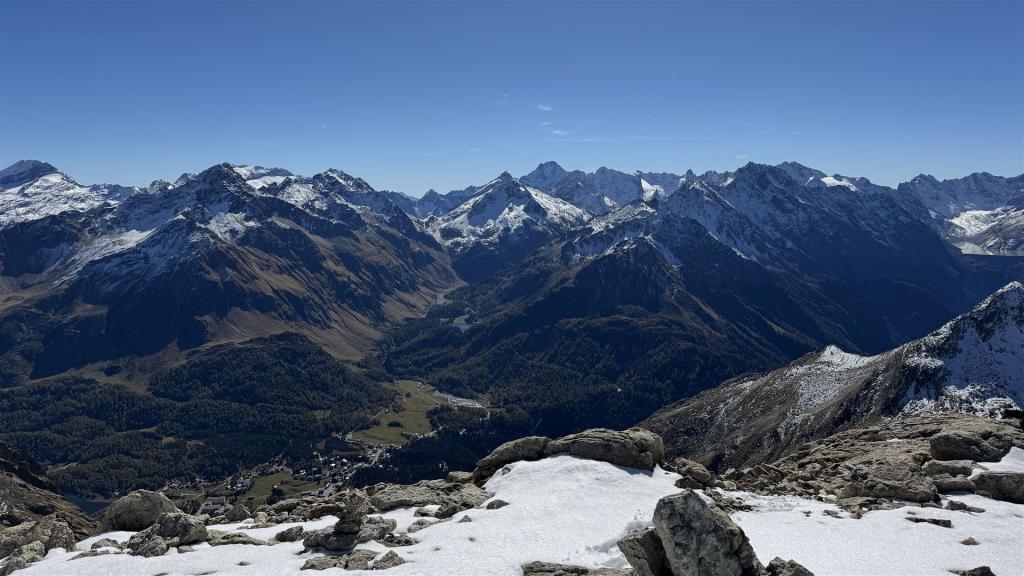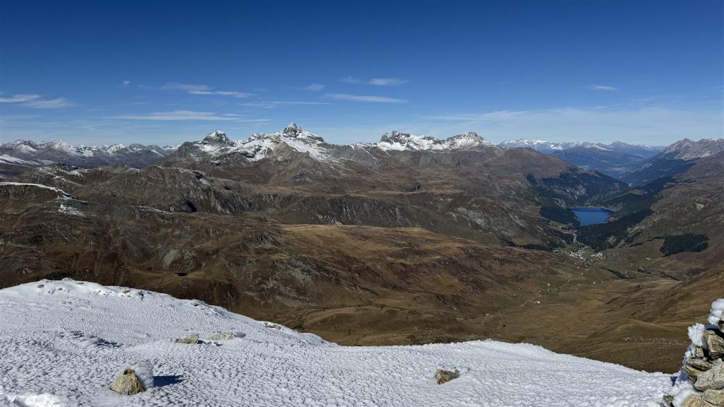 Auf dem Piz Grevasalvas, Blick auf Piz Corvatsch, Piz Bernina -