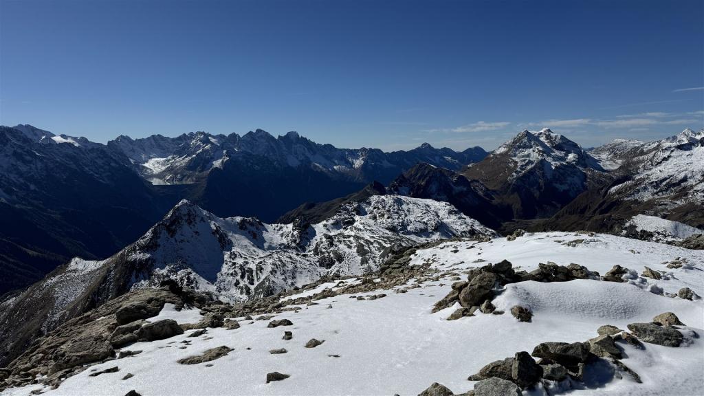 Auf dem Piz Grevasalvas, Blick auf Pizzo Cengalo, Piz Duan -