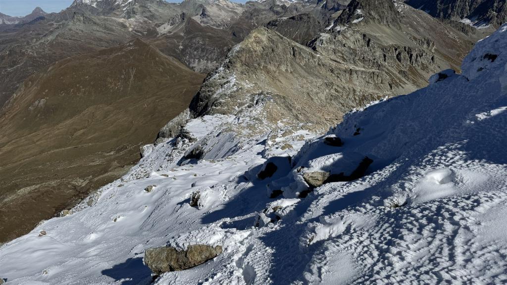 Blick auf den Berggrat und ein paar Spuren von mir (links) -