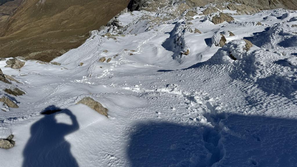 Im Abstieg benützte ich diese bisher einzige Fussspur.