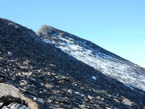 Am Nordhang des Piz Curver lag noch relativ viel Neuschnee, ein Aufstieg vom Nordgratsattel machte nicht viel Sinn, Wendepunkt auf dem Nordgratsattel |