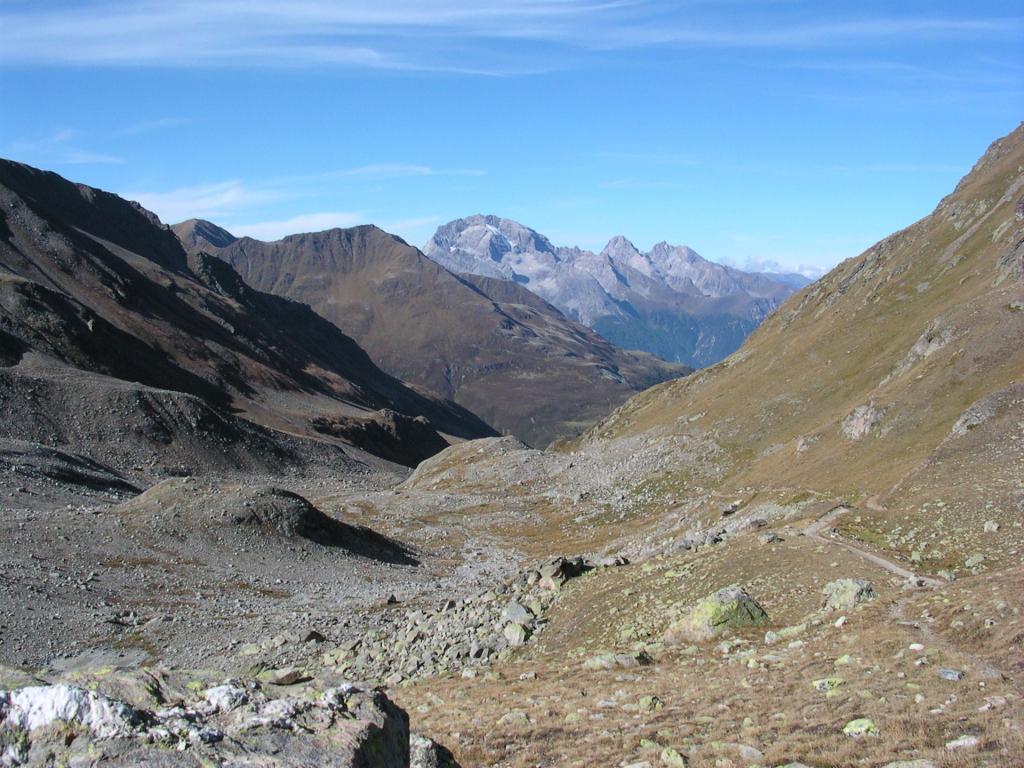 Im Val dal Tschüvel, Blick auf Piz Kesch und Keschhütte