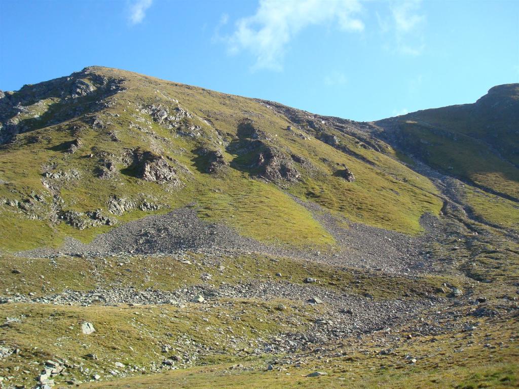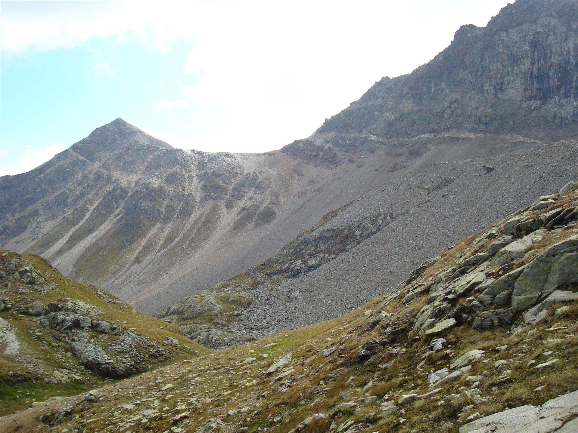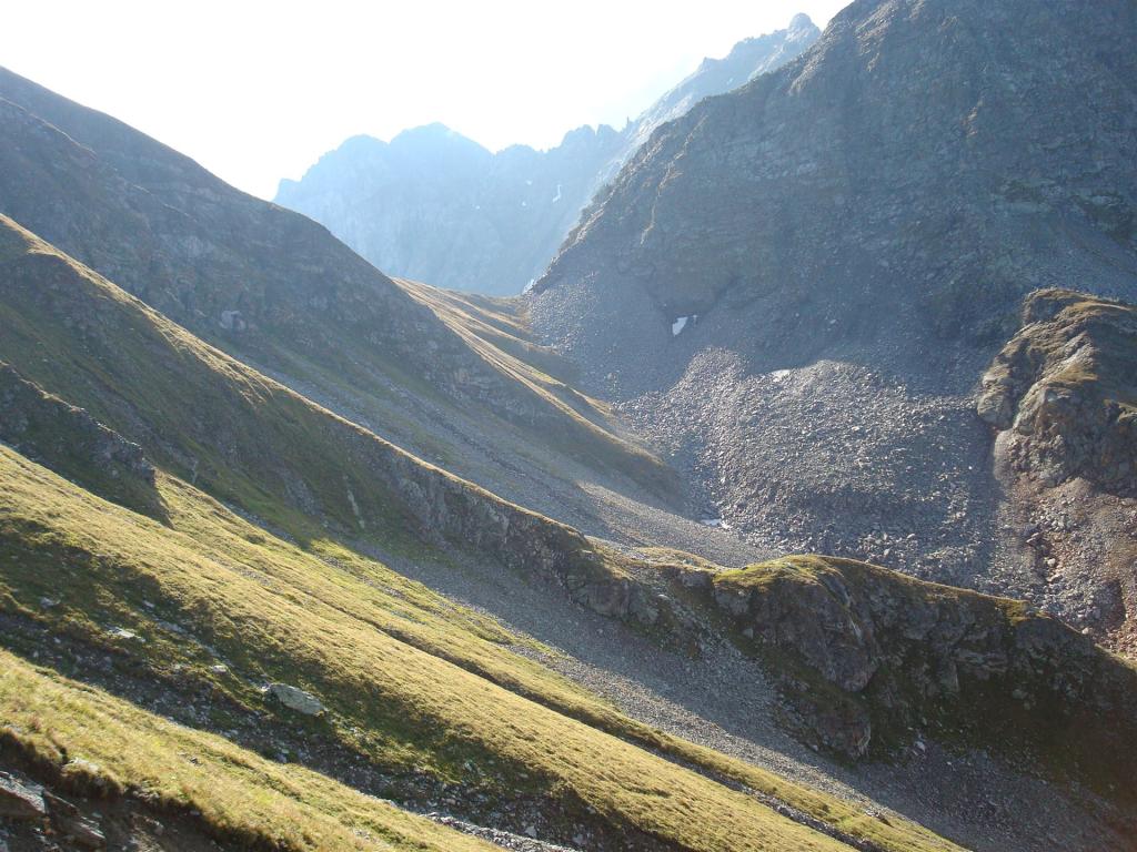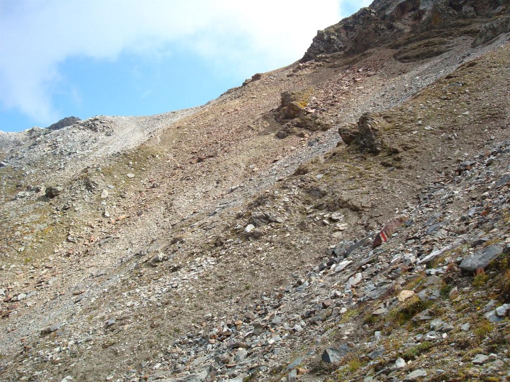 Zwischen Fuorcla da Vallesa und Fuorcla da Stavelatsch wählte ich dieses Mal die Variante weiter abzusteigen, zu traversieren und wieder aufzusteigen. Ohne Weg gab es eine Passage, die ein wenig Mühe bereitete.