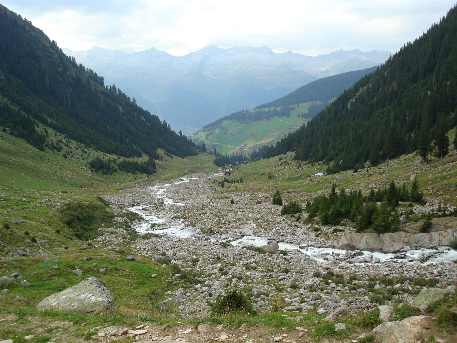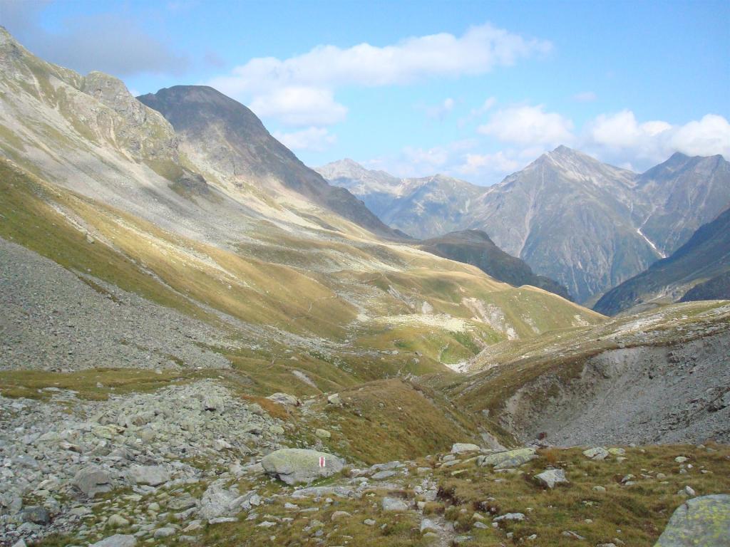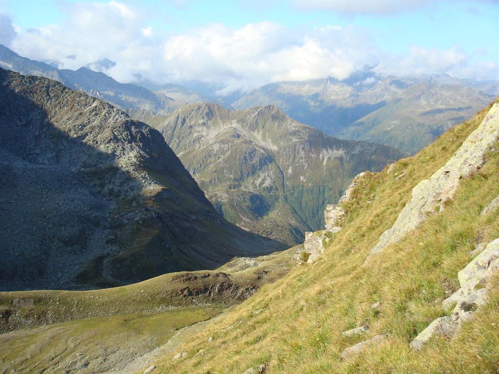 Auf dem Weg zur Medelshütte, Blick zurück auf Val Lavaz, Piz Cavel