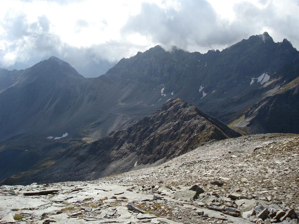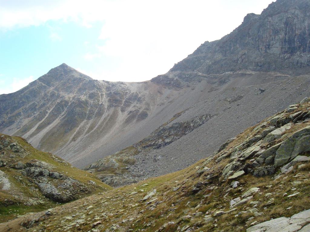 Vor der Fuorcla da Stavelatsch, Blick auf Fuorcla da Vallesa, Piz Muraun