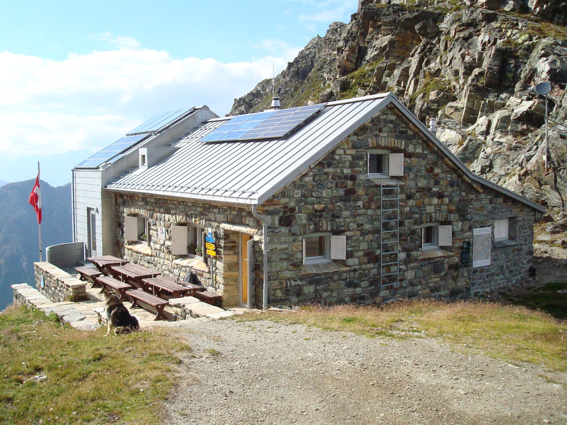 Auf dem Weg zur Medelshütte, ein kleiner Teil des Daches ist sichtbar