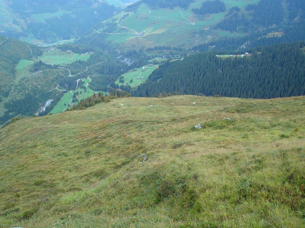 Manchmal ziemlich steil, aber im Gras hat man Grip