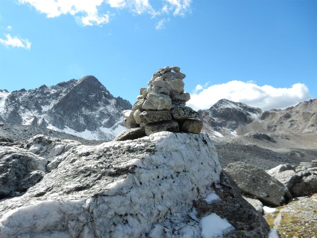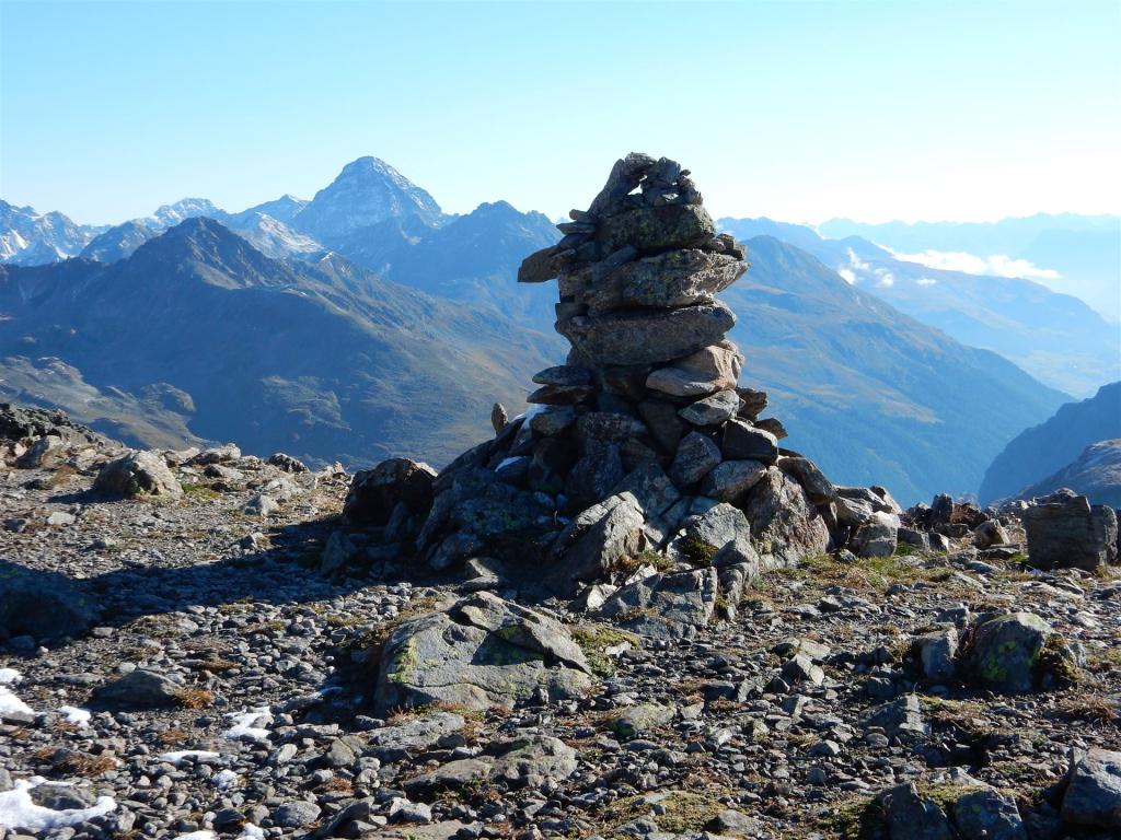Steinmännchen mit Piz Radönt und Radüner Rothorn im Hintergrund