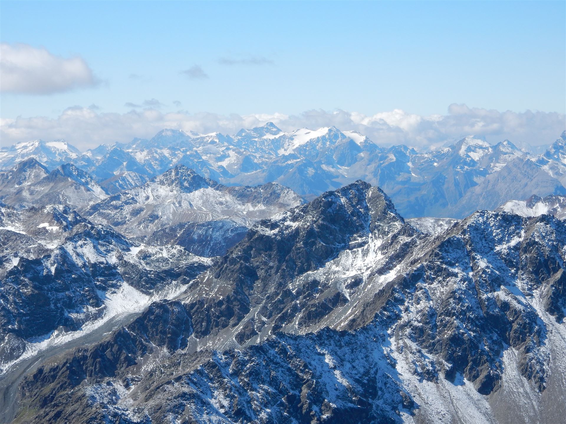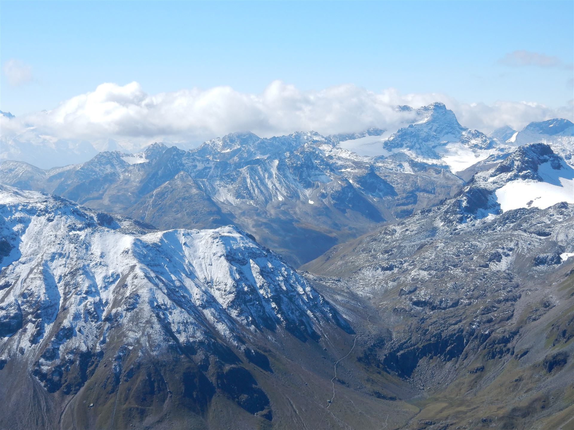 Auf dem Flüela Schwarzhorn, Blick auf Älplihorn und viele andere Berge