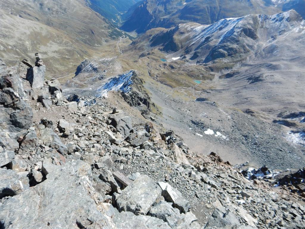 Auf dem Flüela Schwarzhorn, Blick hinunter zur Flüelapassstrasse