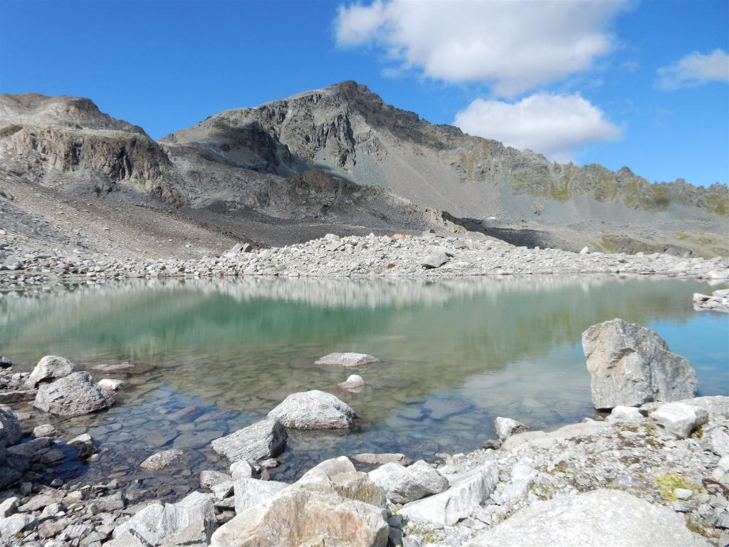 Am kleinen Bergsee vorbei, Blick auf Flüela Schwarzhorn