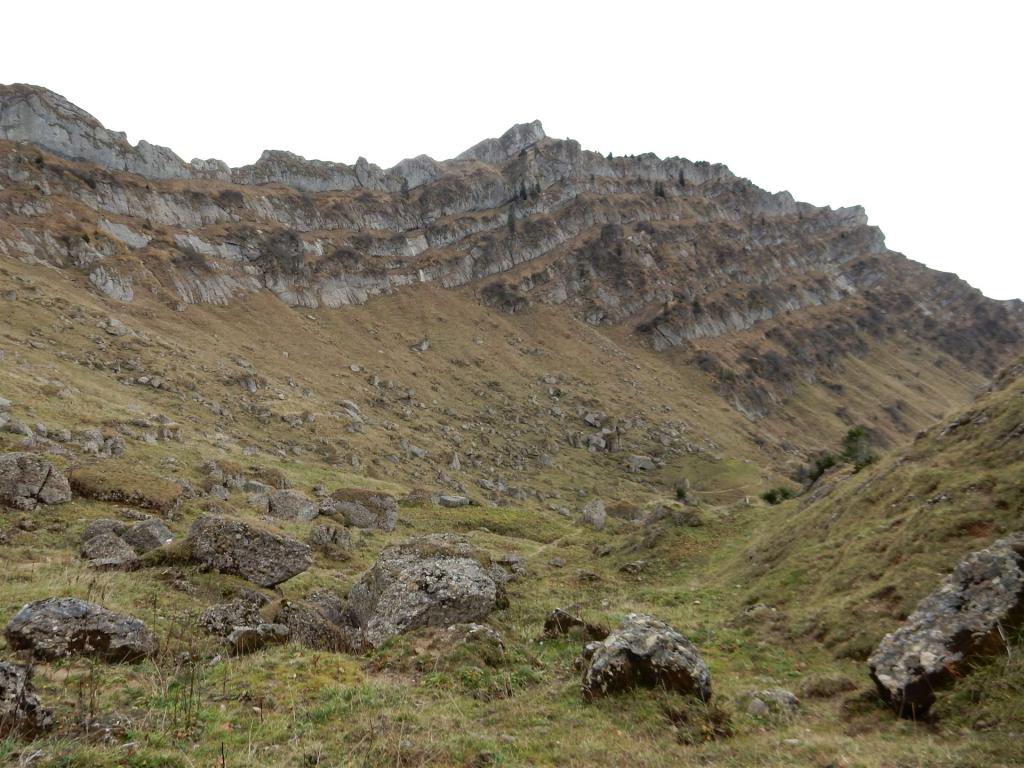 Bei ca. 1700m, Blick auf Grappenhorn, Federispitz, Chüemettler