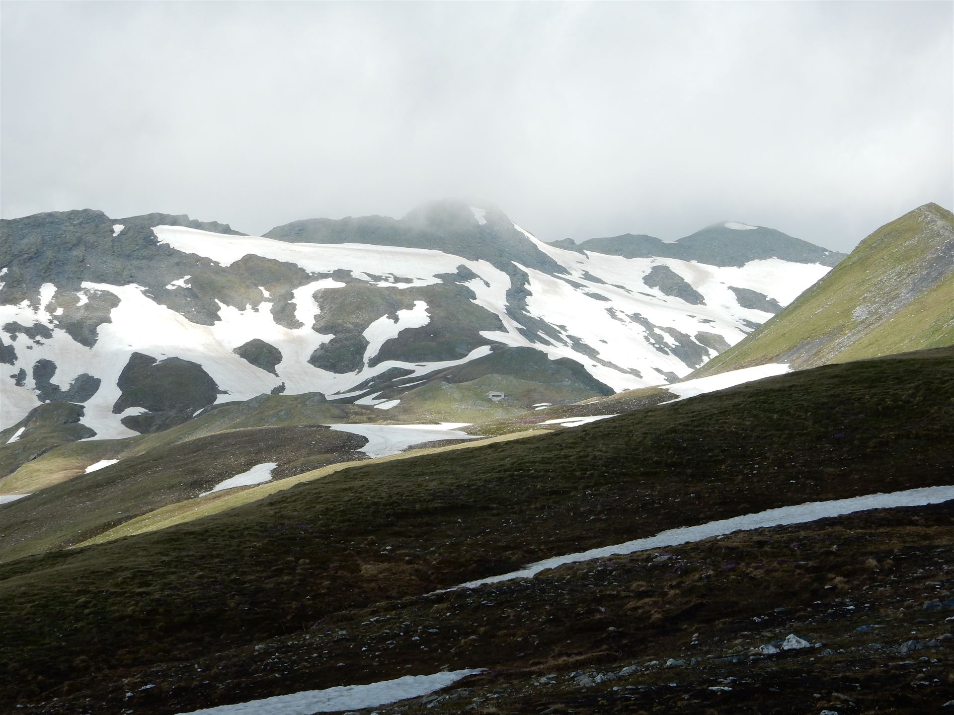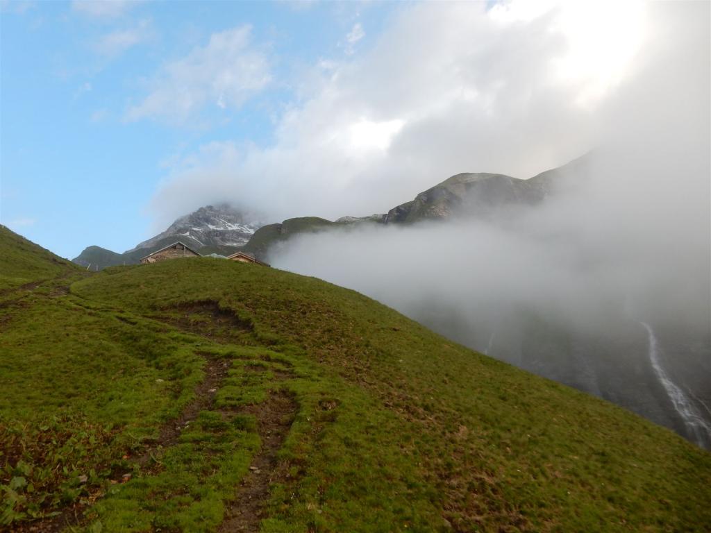 Bei Safierberg, Blick in Richtung Bärenhorn mit Wolken/Nebel