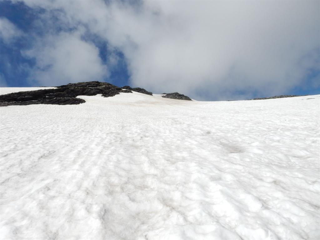 Ich habe den 2. Vorgipfel ausgelassen und bin direkt über den Schnee auf den 1. Vorgipfel aufgestiegen.