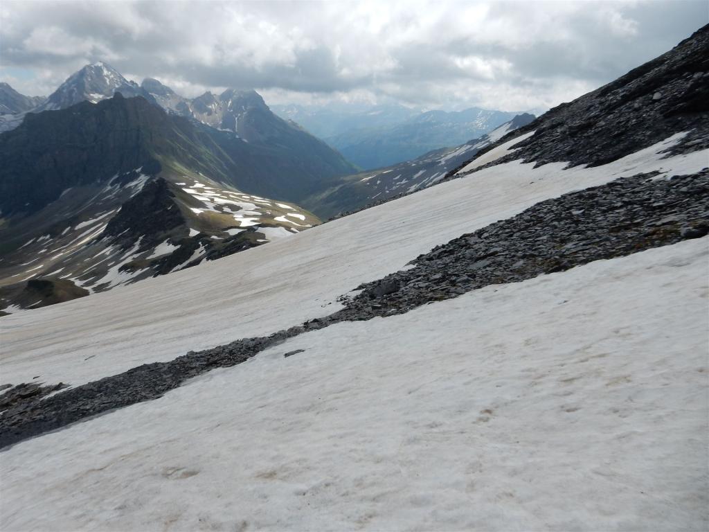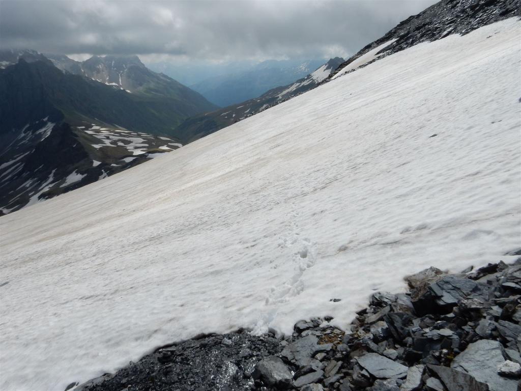 Die Schneefelder sind angehmer zum Gehen als die Geröllhänge