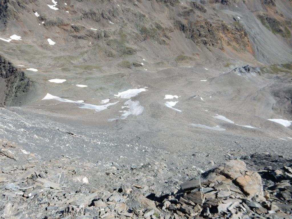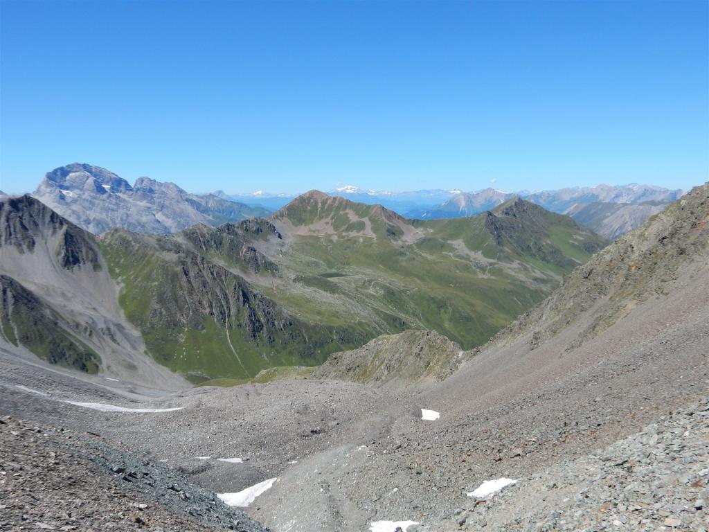 Im Abstieg von der Fuorcla Pischa, Blick zurück auf Piz Blaisun