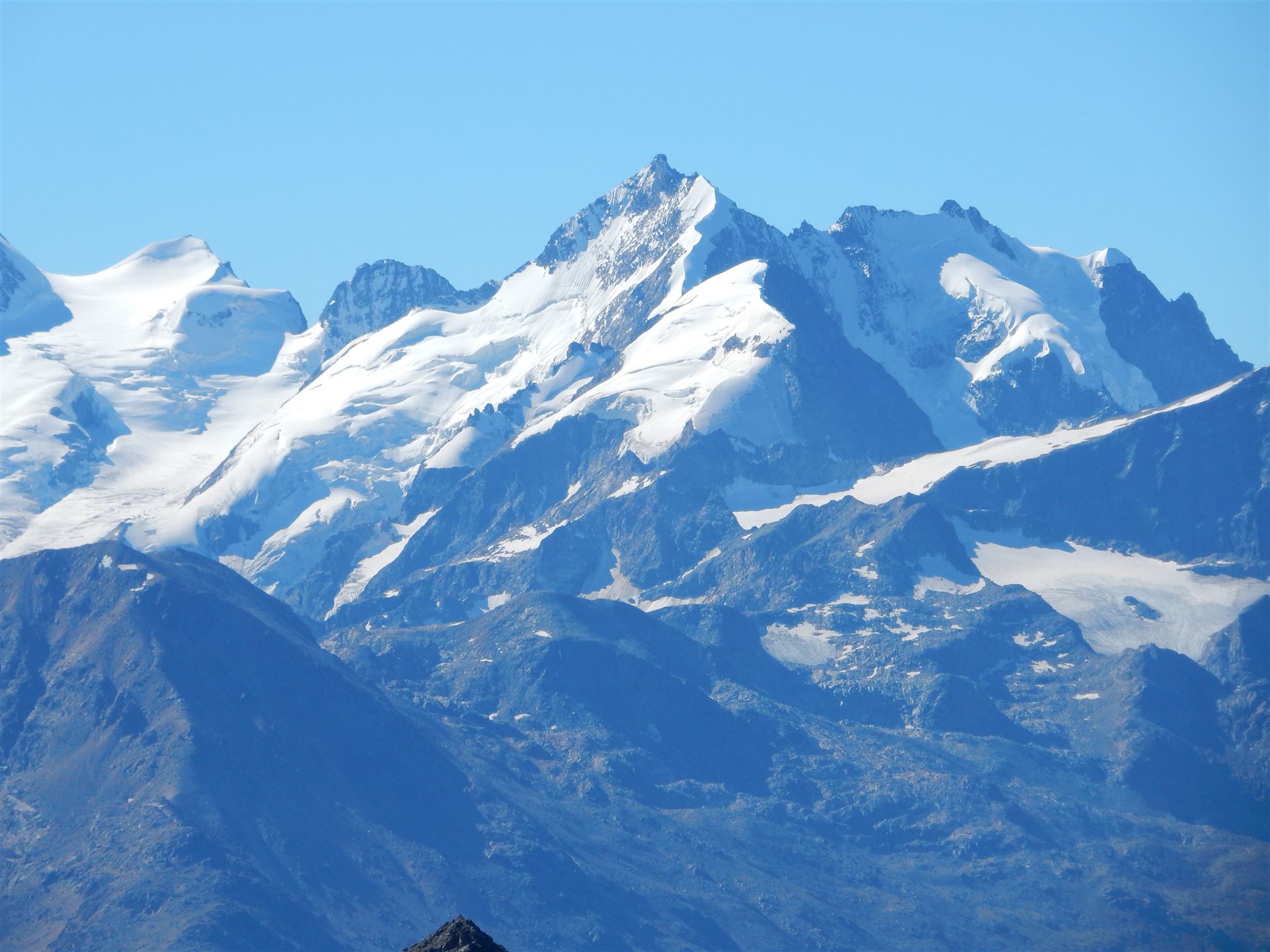 Auf dem Ostgrat, Blick mit Zoom auf Piz Bernina