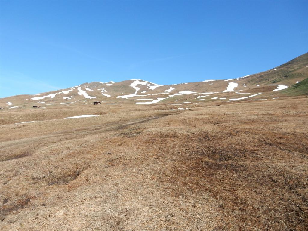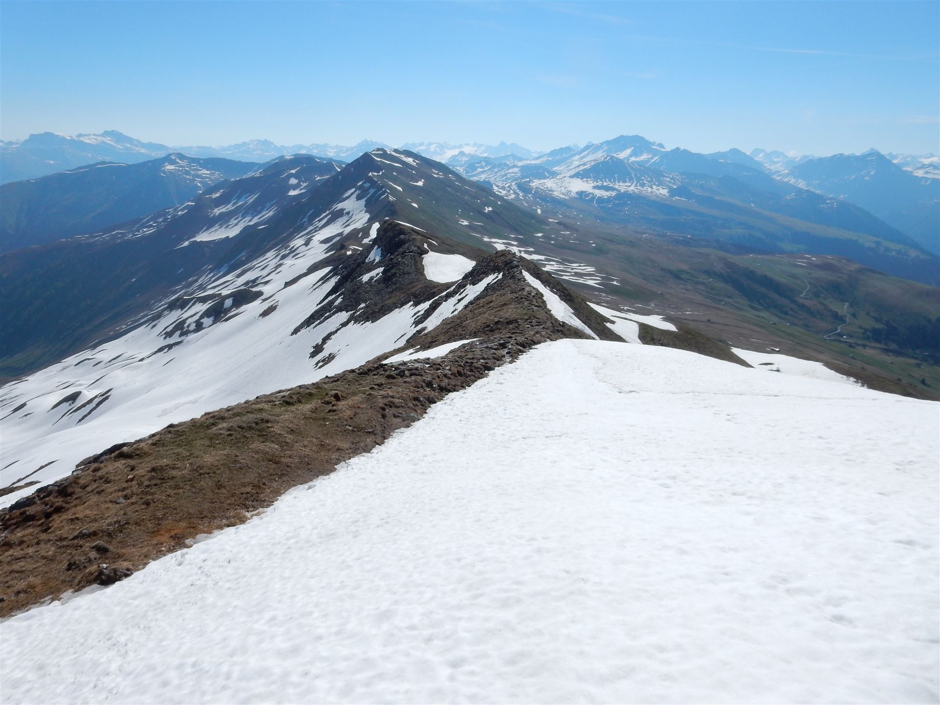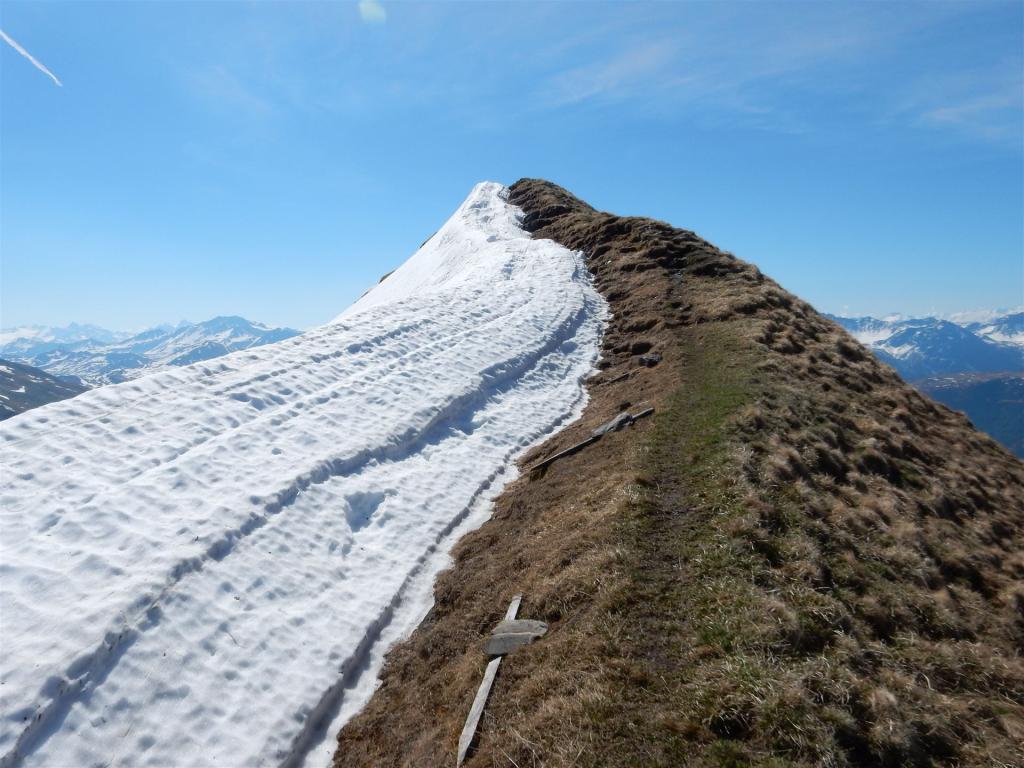 Beim Abstieg von Hochwang in Richtung Bleis lag in der Mulde noch relativ viel Schnee. Da musste ich ein wenig aufpassen und an den Rändern gehen. Man weiss ja nie, wie stark die Schneedecke ist.