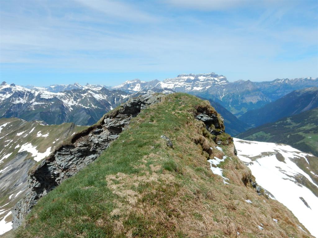 Auf dem Gipfelgrat des Foostöckli, Blick nach Westen mit Glärnisch