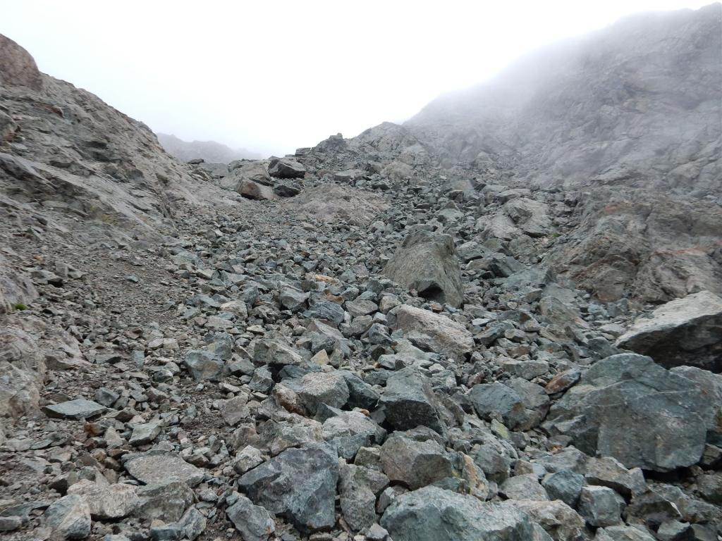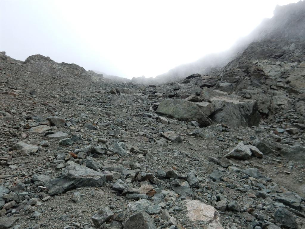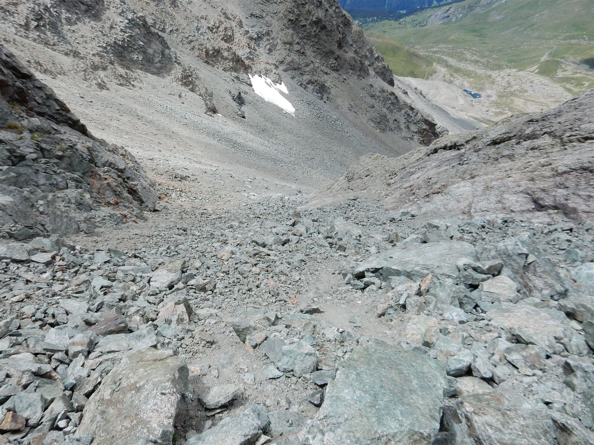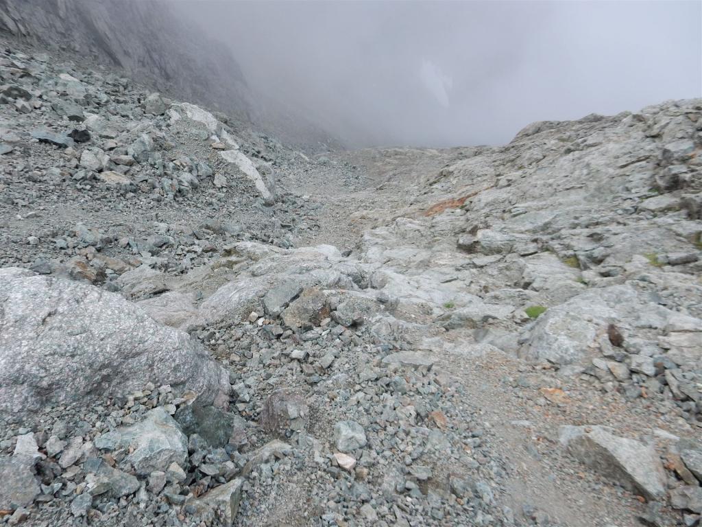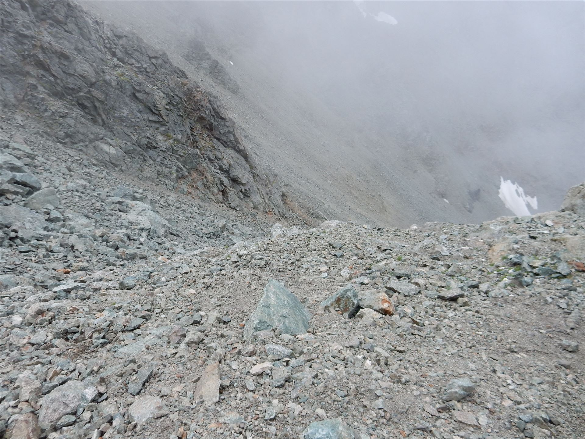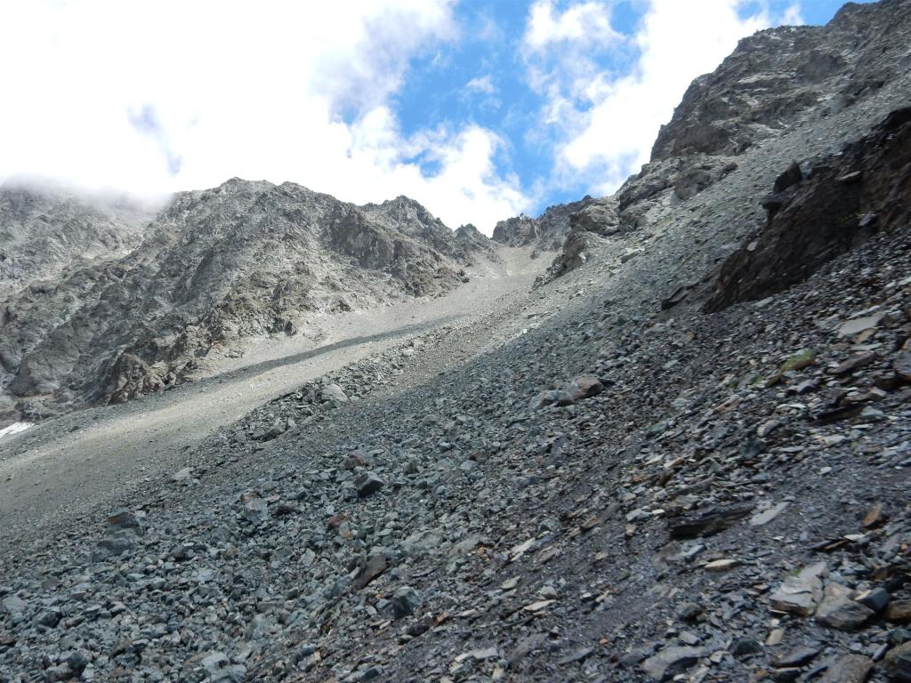 Im Abstieg, Blick auf den oberen Teil des Geröllhangs