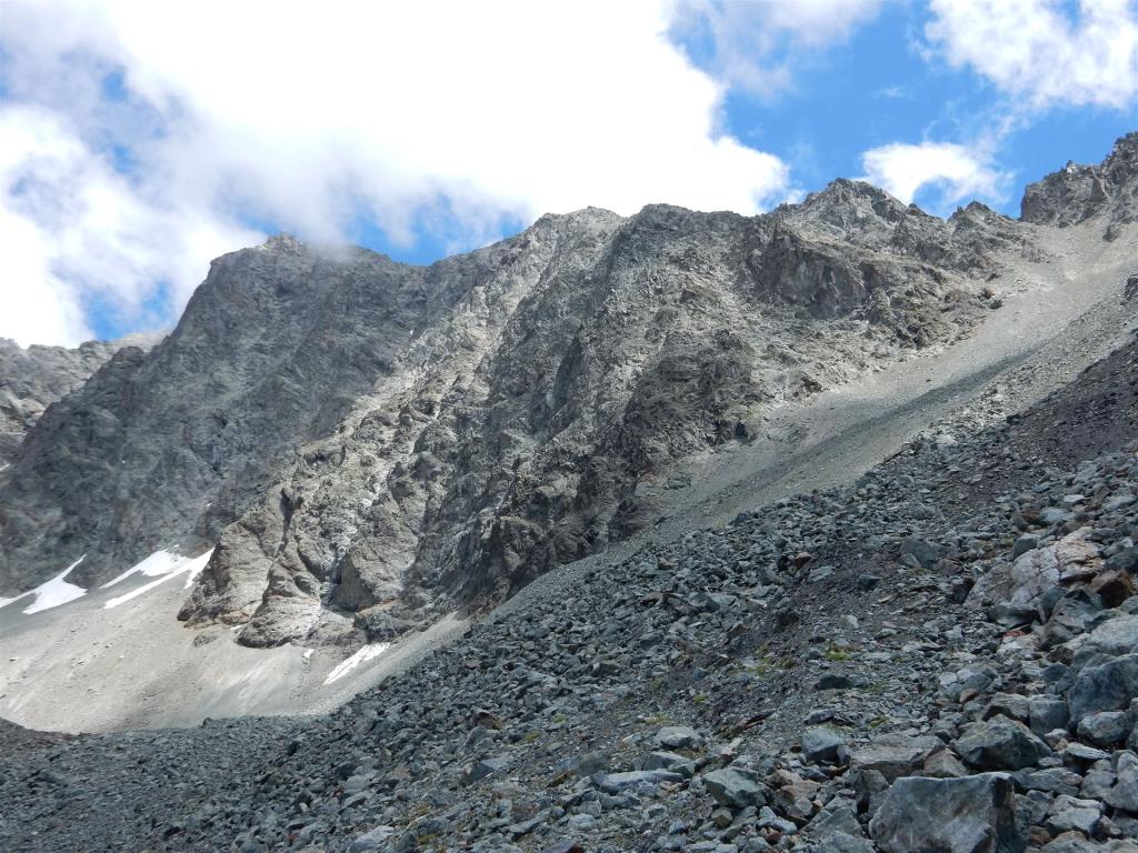 Ich wusste, dass ich im unteren Geröllband am linken Rand aufsteigen musste. Doch von rechts kommend musste ich das Geröllbank erst überqueren.