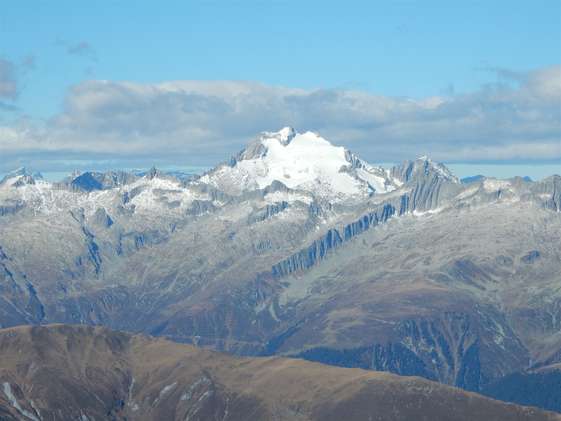 Auf dem Piz Cavel, Blick mit Zoom auf Rheinwaldhorn