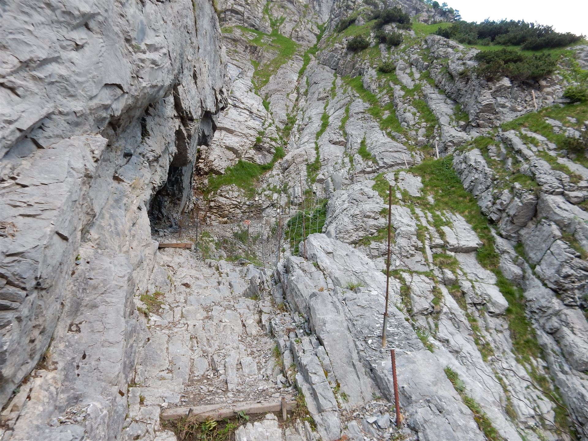 Unterhalb des Gipfel gibt es ein paar Handeinätze mit Kletterhilfen