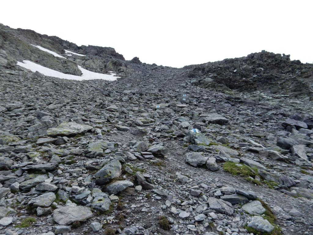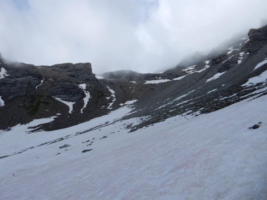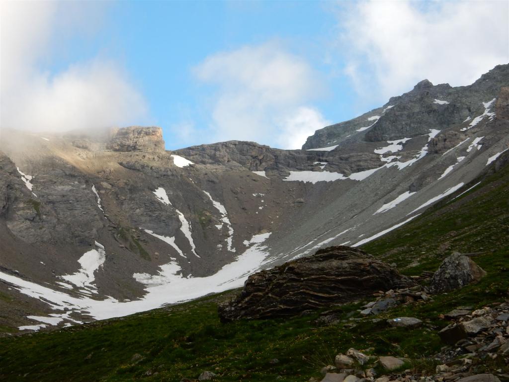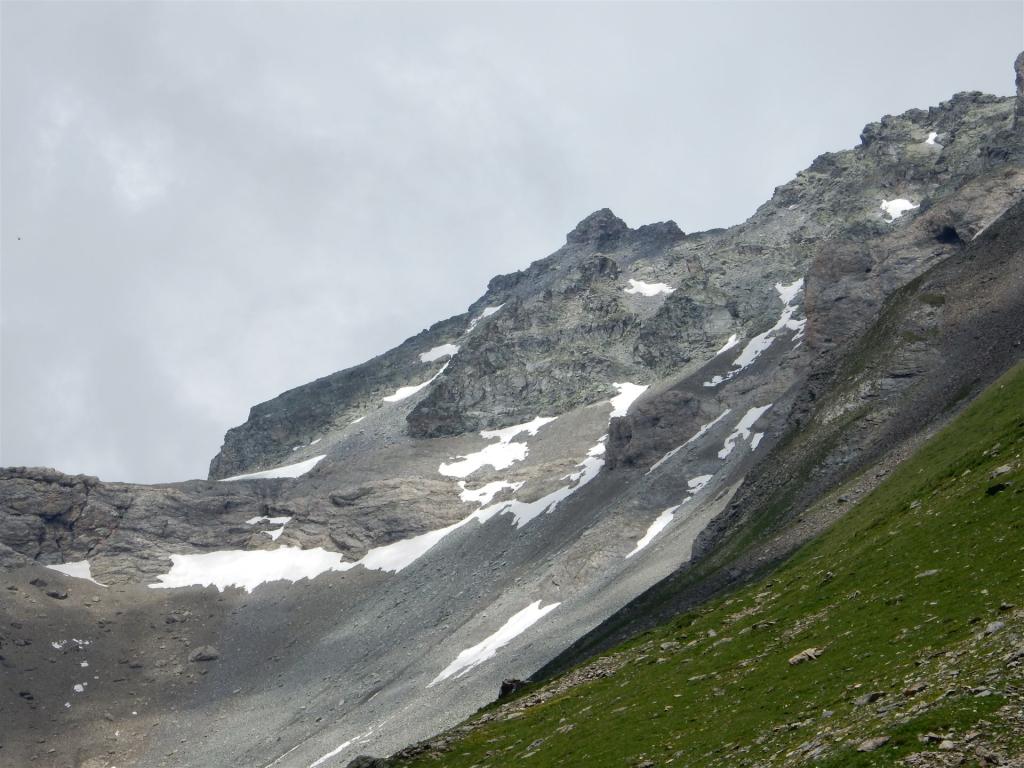 Vom Start geht es über sehr steile ca. 700m durch die Schlucht bergauf zur Alp (Tersol). Dann geht es bis zum Talkessel moderat und die Schneefelder erleichtern sogar das Gehen.