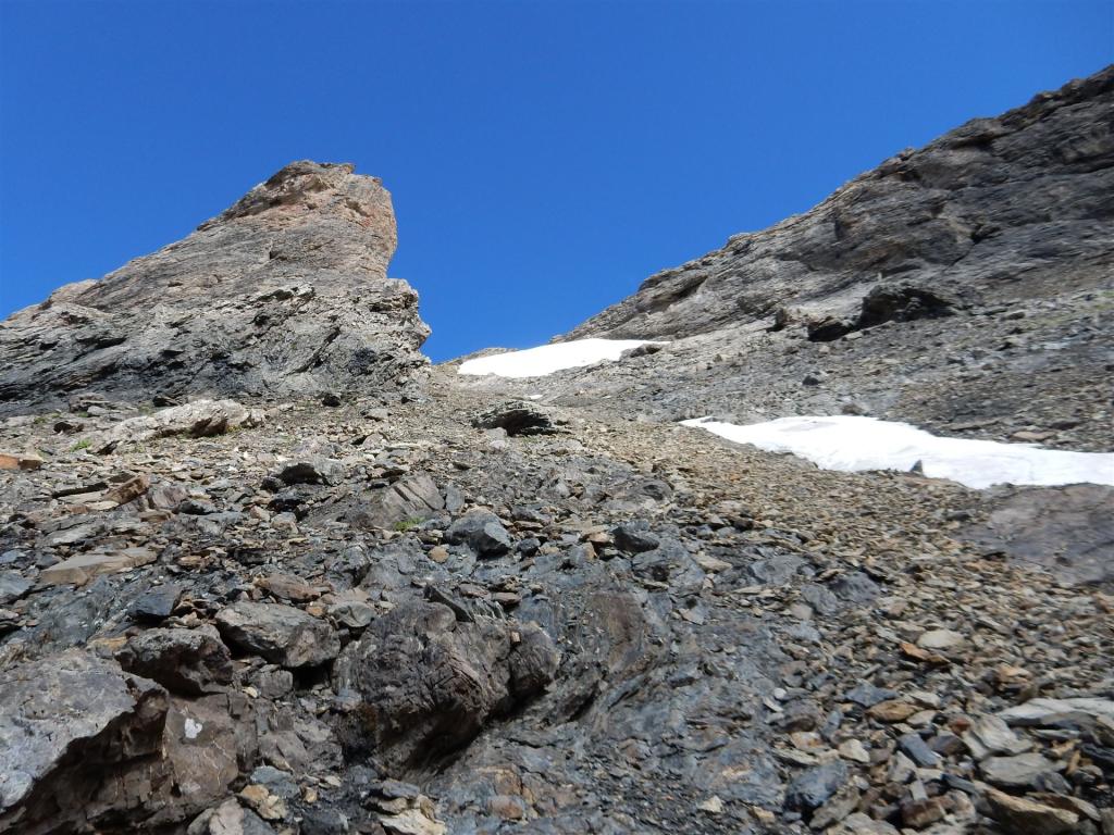 Schwieriger im steilen Aufstieg zum Pizolsattel