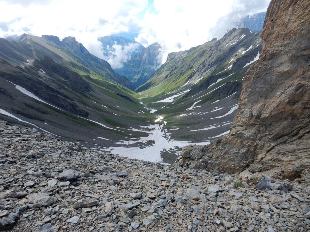 Auf dem Pizolsattel, Blick auf Tersol (Tal des Aufstiegs)