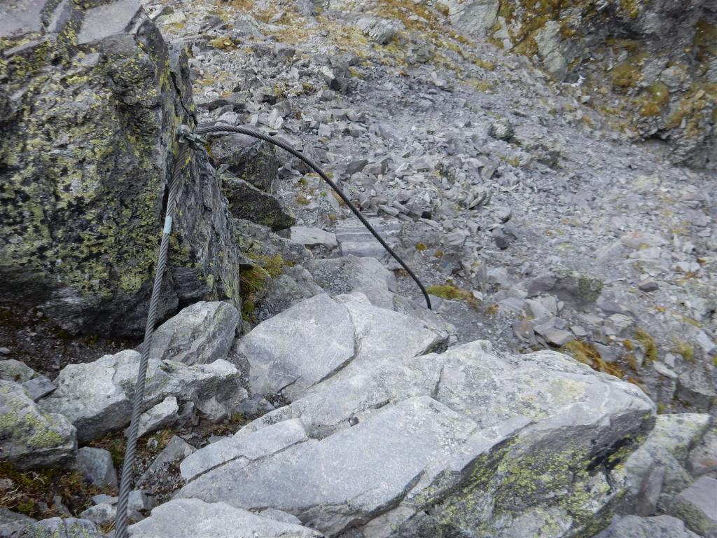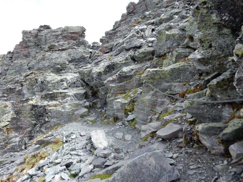 Beim Gipfelaufstieg am Pizol sind Drahtseile zu Sicherheit angebracht.