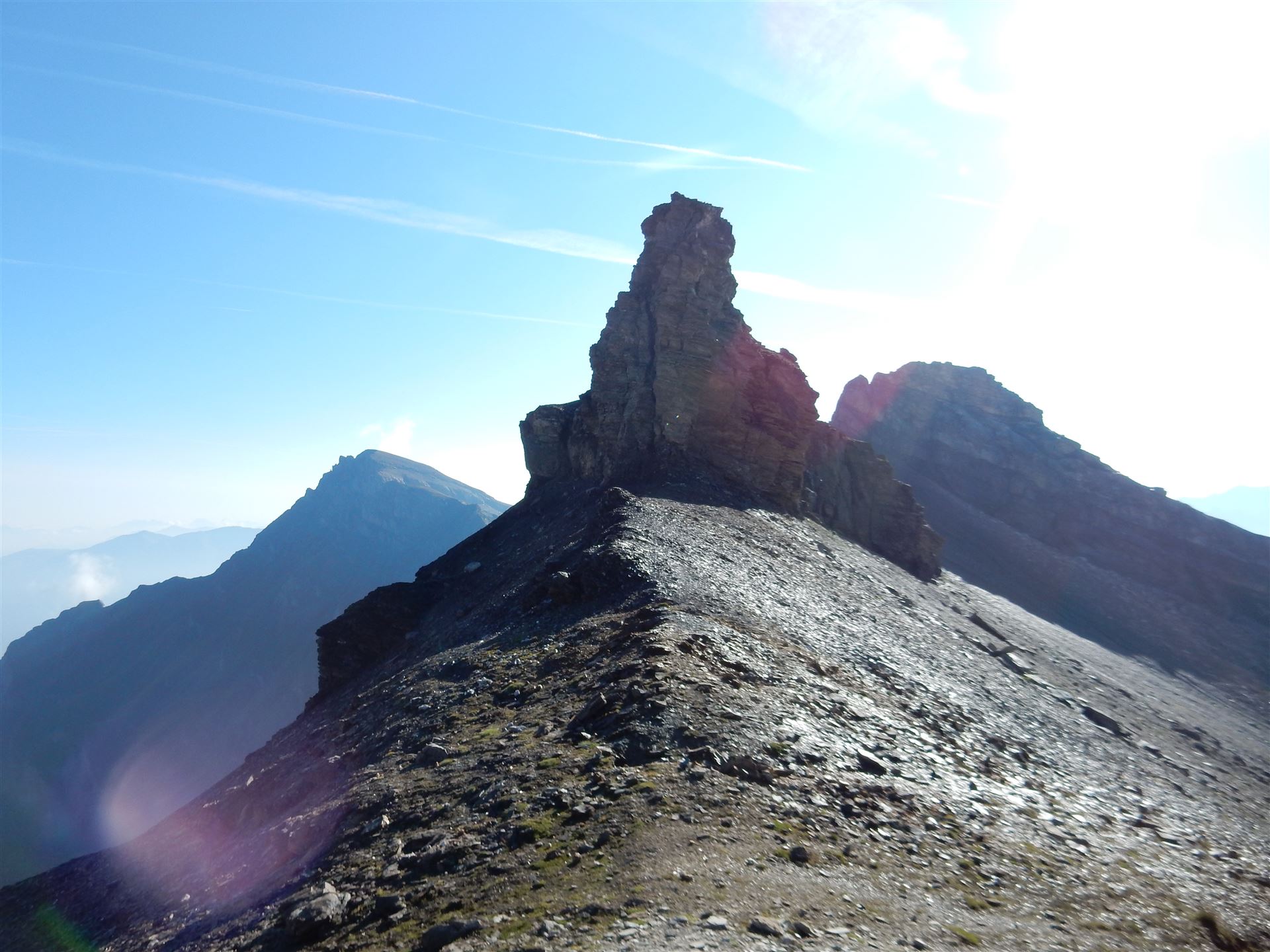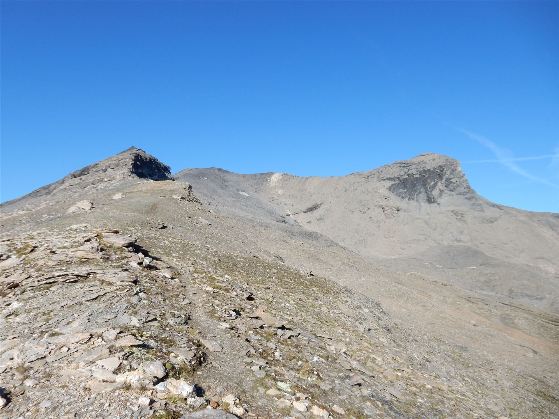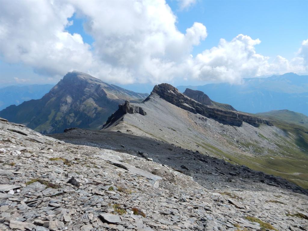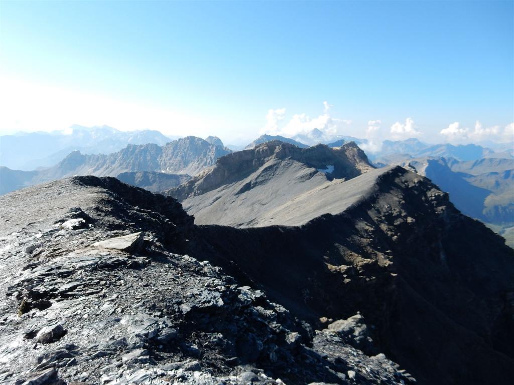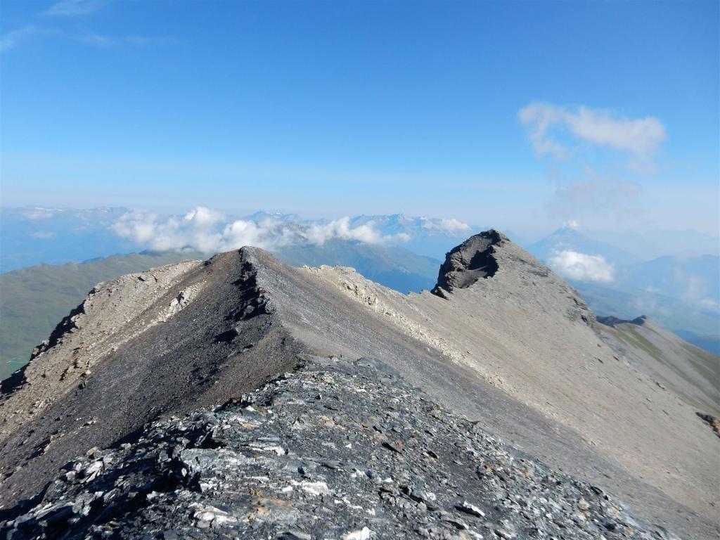 Auf dem Ostgrat (Pt.2806), hinten links das Bruschghorn und rechts ein Nordgipfel