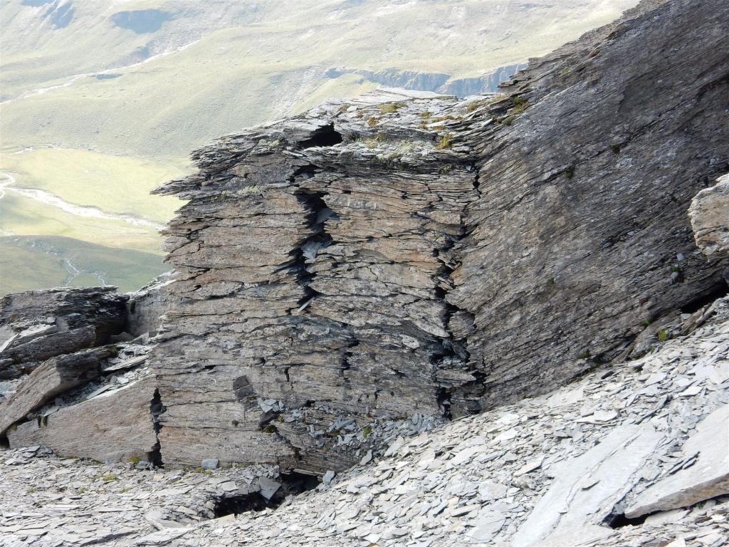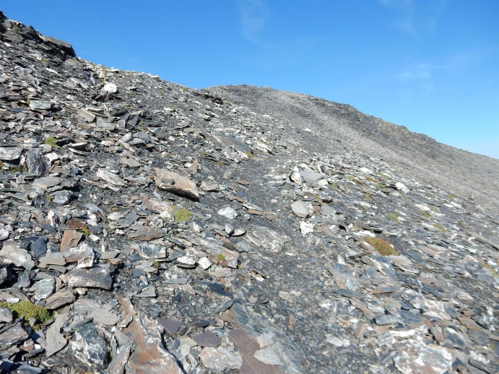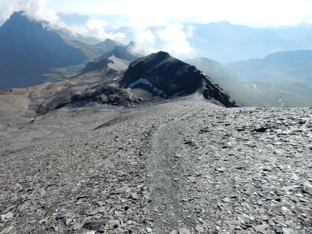 Im Abstieg des Pt.2962 erreicht man ein eindrückliches Schiefer-Gebiet
