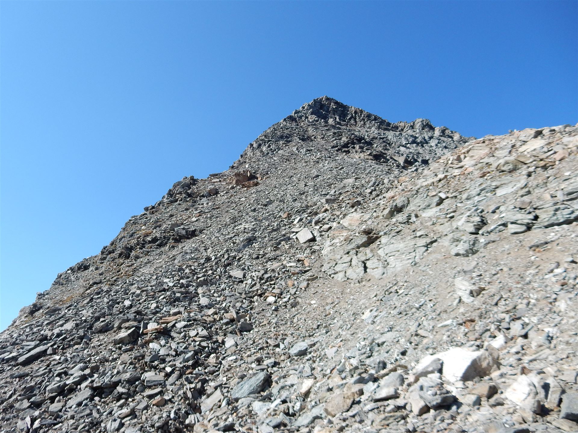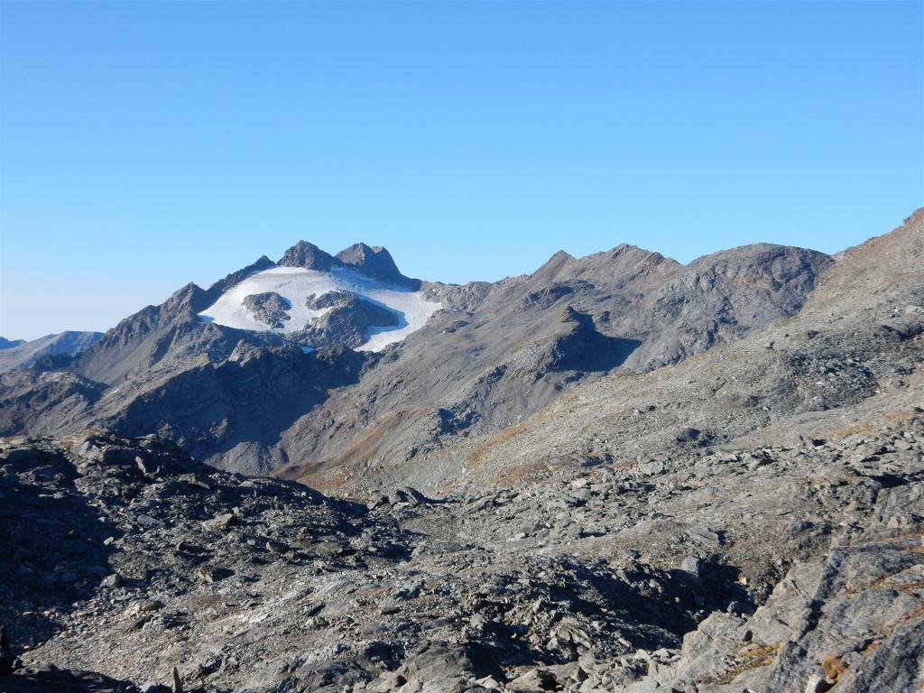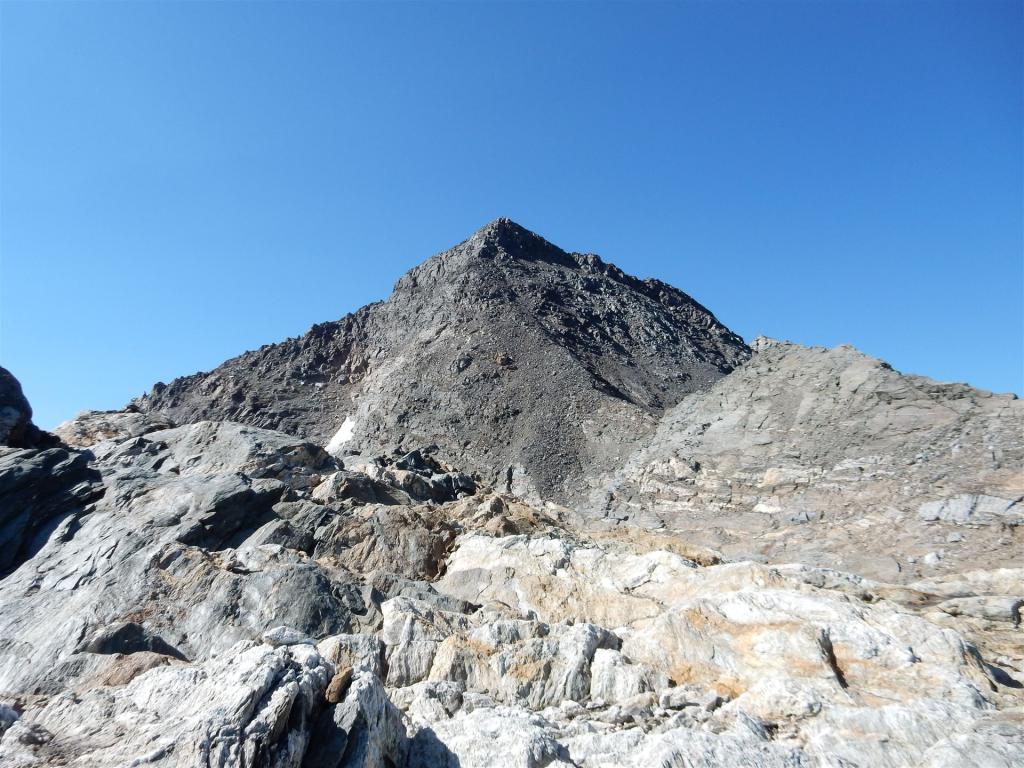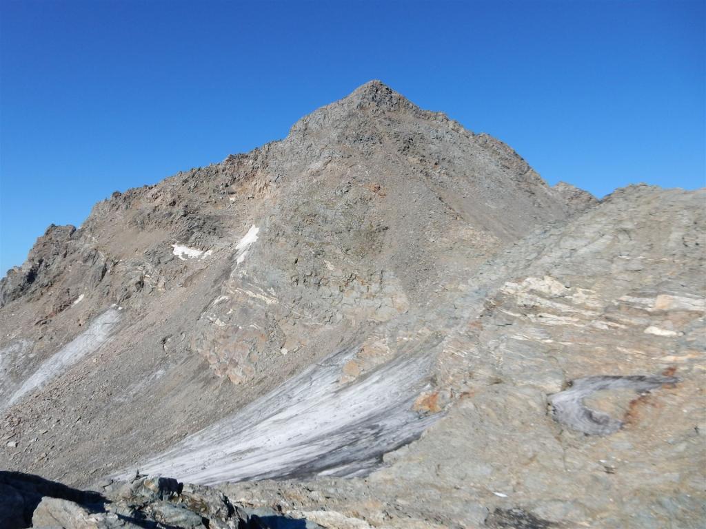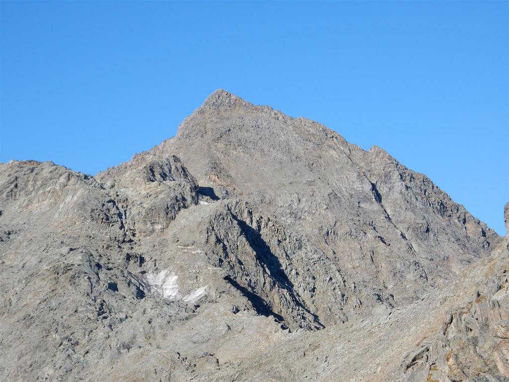 Im Abstieg bei ca. 3000m, Blick auf Pizzo Tambo im Nachmittagslicht