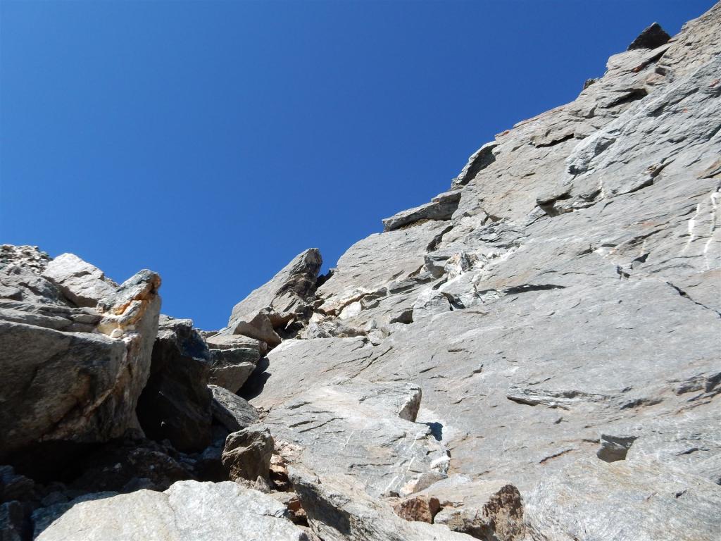 Aufgrund der Abklärungen rechnete ich mit ein paar Kletterstellen vor dem Gipfel. Tatsächlich musste ich dann bereits ab ca. 2900m einige Stellen mit Händen und Füssen überwinden.