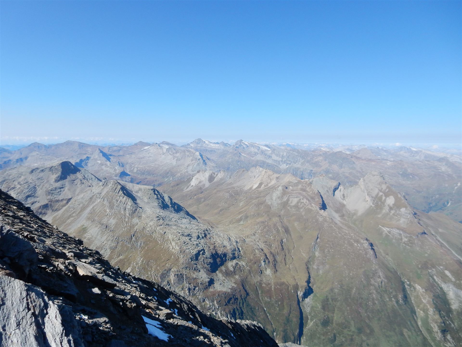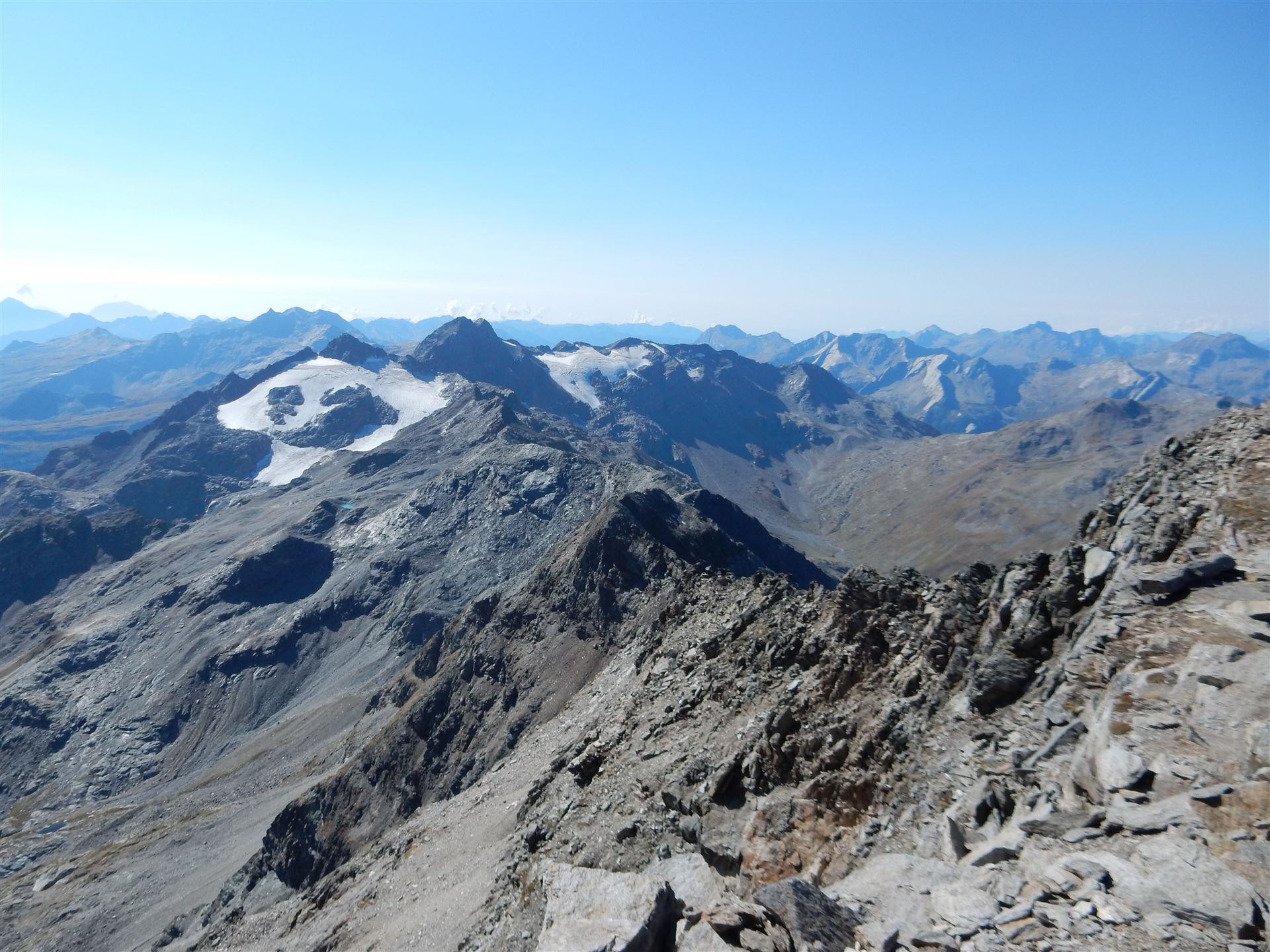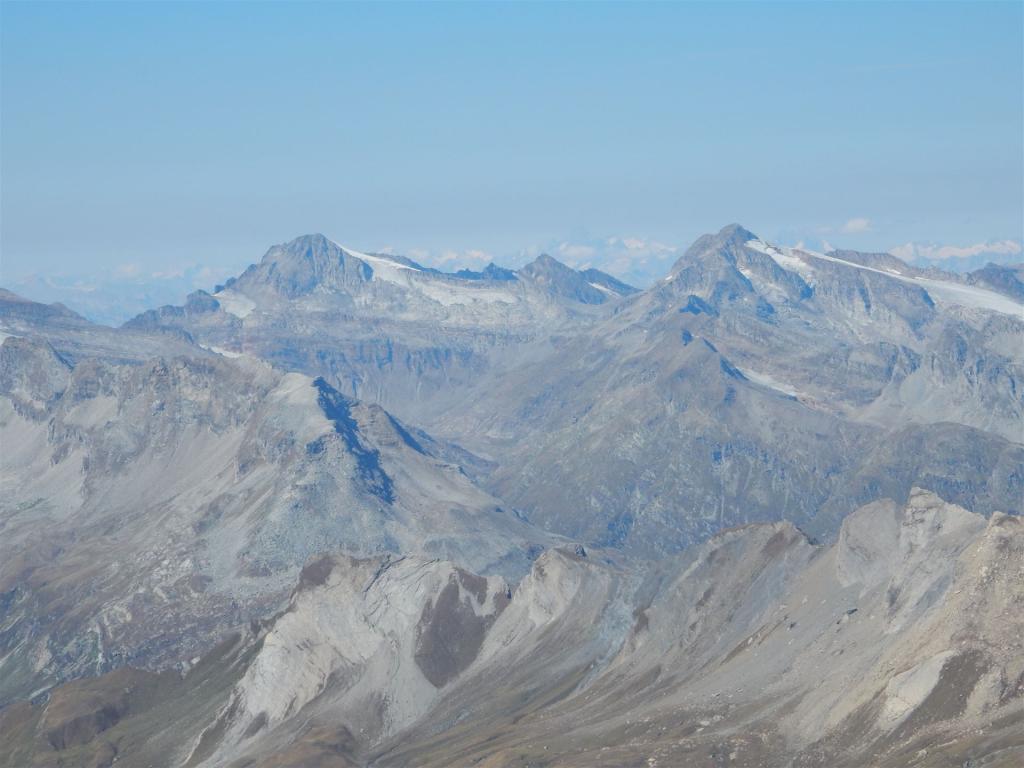 Auf dem Pizzo Tambo, Blick mit Zoom auf Rheinwaldhorn, Güferhorn