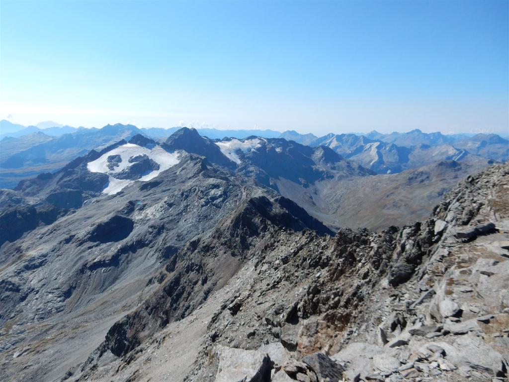 Auf dem Pizzo Tambo, Blick auf Alperschällihorn, Teurihorn, Grauhörner, Gelbhorn, Bruschghorn, Piz Beverin