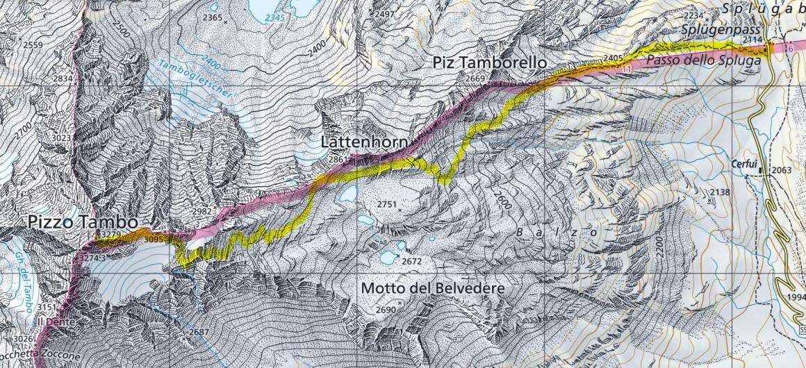 Auf dem Pizzo Tambo, Blick auf die Auf-/Abstiegsroute