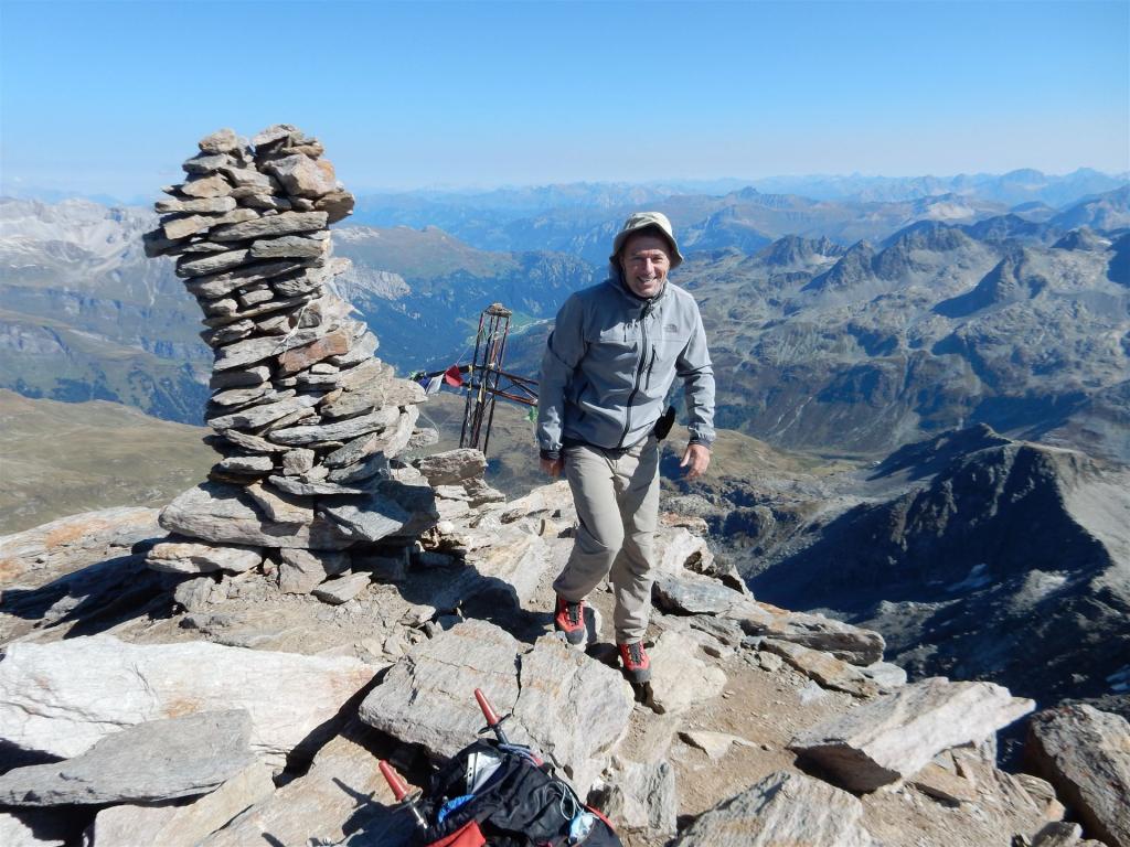 Auf dem Pizzo Tambo mit Gipfelporträt