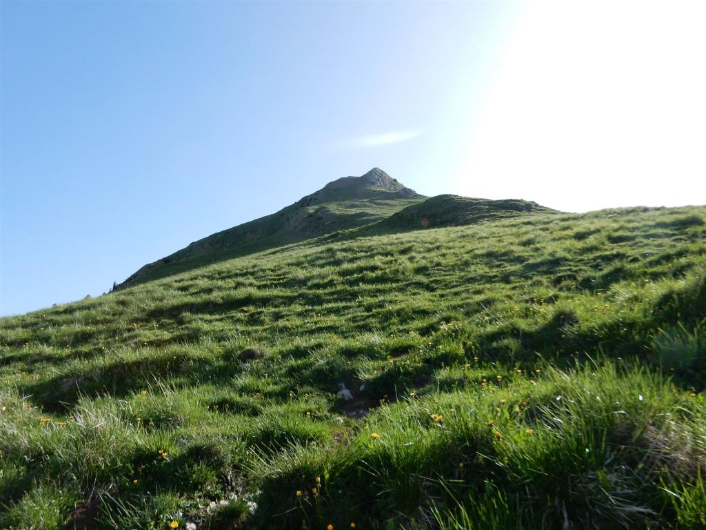 Schöner Grashang nach dem Windenpass, Blick auf den Vorgipfel