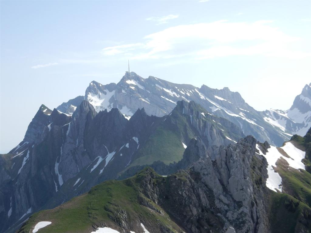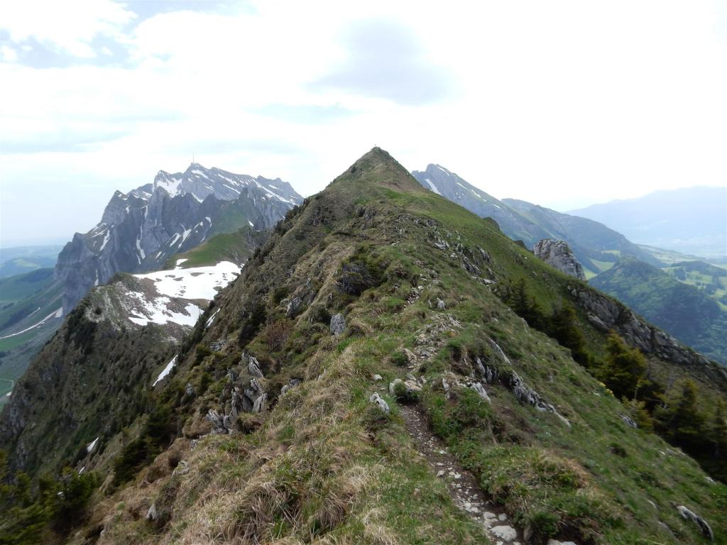 Beginn des Abstiegs, Blick zurück zum Lütispitz, Säntis